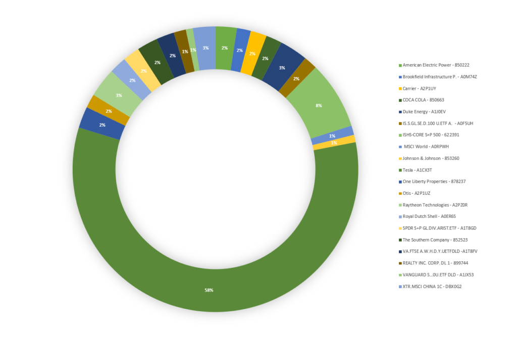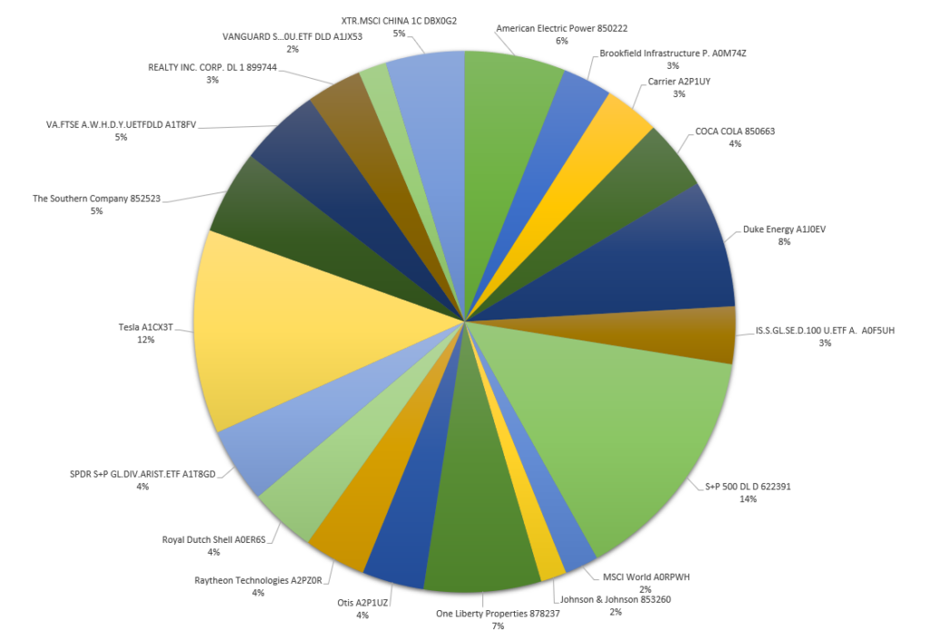 Ich habe einige Zukäufe getätigt und basierend auf dem investierten Kapital besteht das Depot im Januar 2021 aus folgenden Werten: