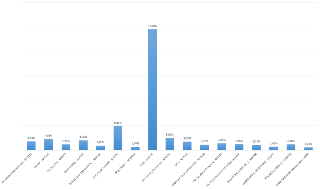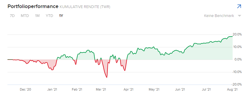 Bei der Wertentwicklung bleibt TESLA der Fernsehturm in der Landschaft. Und dies obwohl sich im Depot im Juli 2021 TESLA kaum verändert hat, andere Positionen dafür deutlich zugelegt haben.