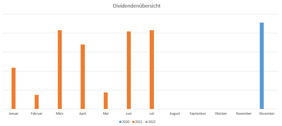 Um einen Vergleich über die Höhe der Dividenden und damit eine schnelle Übersicht über Steigerungen zu erhalten, habe ich eine Grafik erstellt. Da die Datenerhebung erst seit Dezember 2020 erfolgt, gibt es noch keinen direkten Jahresvergleich: