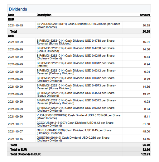 Weiterhin musste auch BIP das Depot verlassen. Zum einen verstehe ich die Art und Weise der Dividendenausschüttung nicht (Bei Captrader erfolgt keine Netto Ausschüttung) und zum anderen ist BIP schon in BAM enthalten.