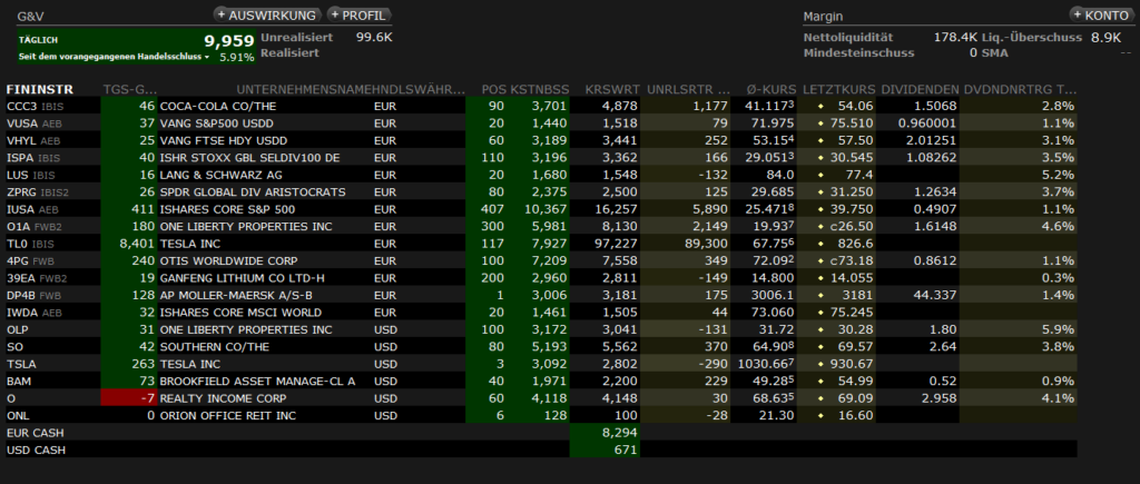 Die nachfolgenden Bilder zeigen die aktuell gehaltenen Positionen und deren aktuelle Performance:
