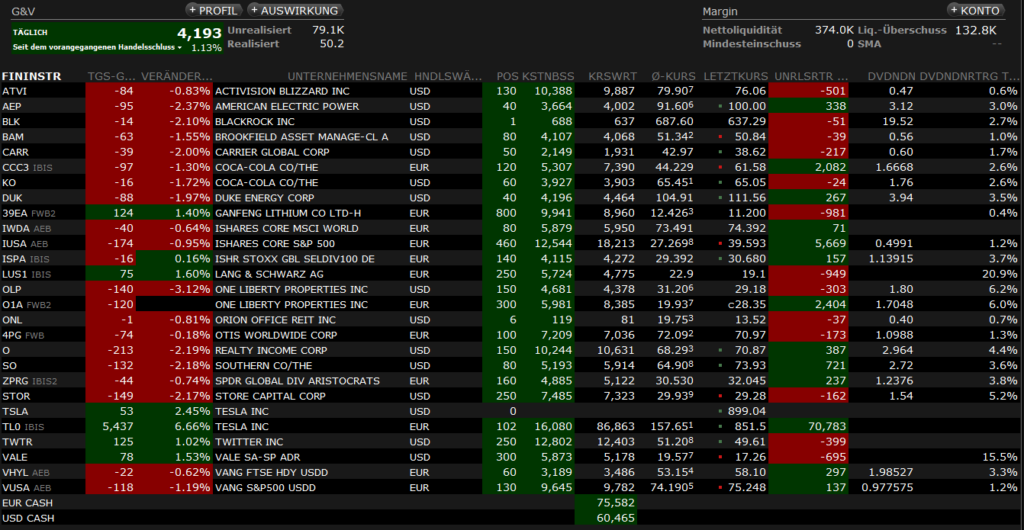 Es wirkt ein wenig unaufgeräumt und es wird Zeit für einen Frühjahrsputz. Ende April habe ich folgende Werte im Depot: