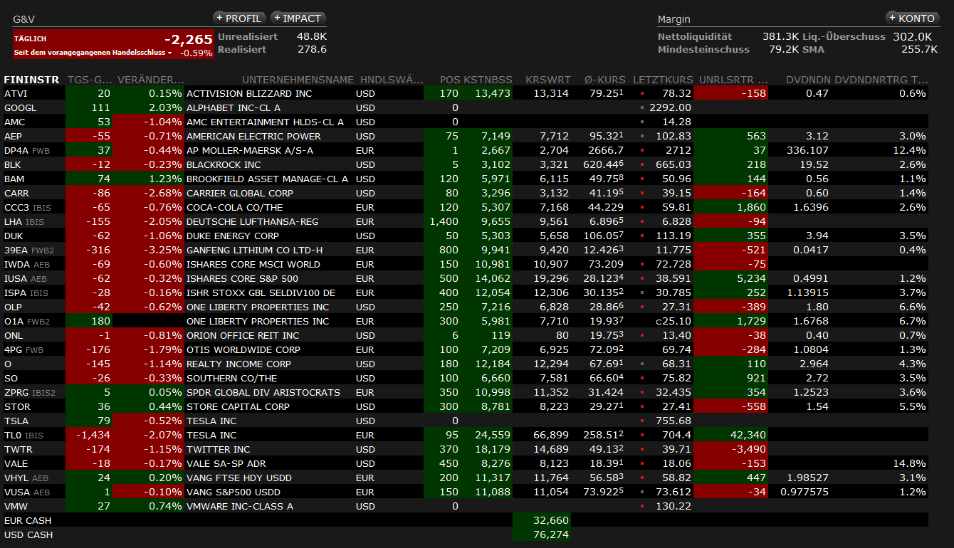 Von einer (positiven) Entwicklung kann im Grunde genommen keine Rede mehr sein. Die Verluste waren erheblich und schon sitze ich im negativen Bereich: