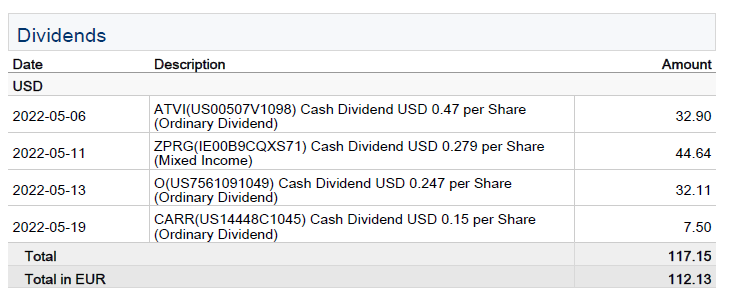 Die Dividenden können den Verlustschmerz kaum mildern, möchten aber trotzdem erwähnt werden: