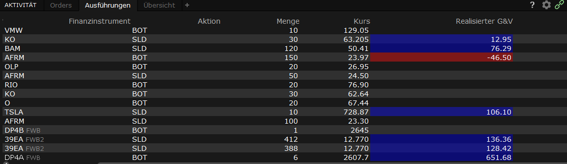 Nachdem ich vieles ausprobiert hatte, bin ich aktuell hauptsächlich wieder beim Swing-Trading angelangt. Für meine Person ist dies die passende Strategie. Sehr hilfreich ist für mich dieser Kanal mit täglichen Live Streams. Es ist der bislang beste Monat seit Aufzeichnung gewesen und ich kann einen Gewinn von 2.541,90€ verbuchen. Trotz des Erfolges hat meine Handelsaktivität nachgelassen. Alle Details finden sich in der nachfolgenden Tabelle: