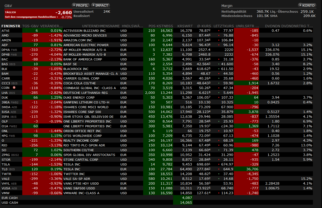 Sobald die ETF Positionen wieder in den grünen Bereich laufen, werde ich hier etwas umschichten. Der ETF VHYL bietet z.B. eine deutlich höhere Ausschüttungsquote als der VUSA. Bei ähnlichem Kursverlauf liegt rechnerisch klar auf der Hand, wer bei meinem Depot das Rennen machen darf.