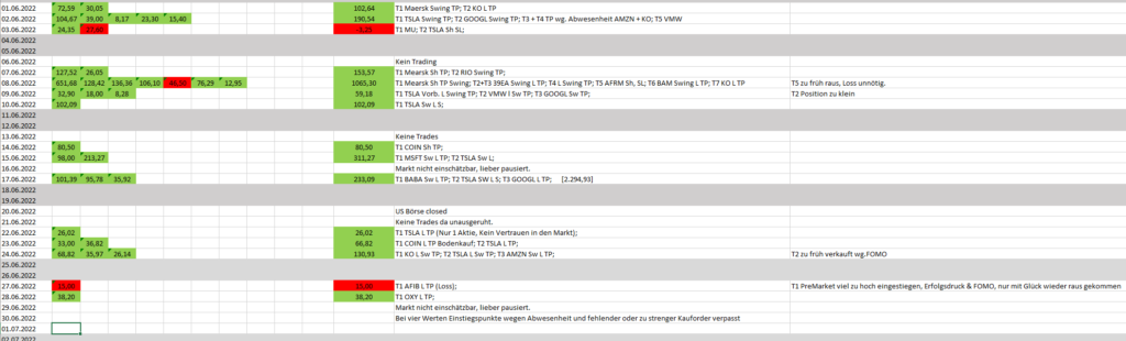 Der beste Handelstag war, wie das nachfolgende Protokoll zeigt, am 08.06.2022: