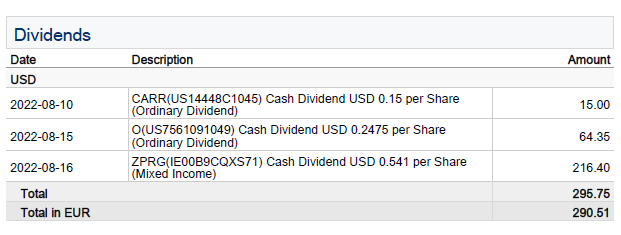 Der August ist bei mir im Bereich Dividenden der schwächste Monat. Nachfolgend alle Details zu den Ausschüttungen: