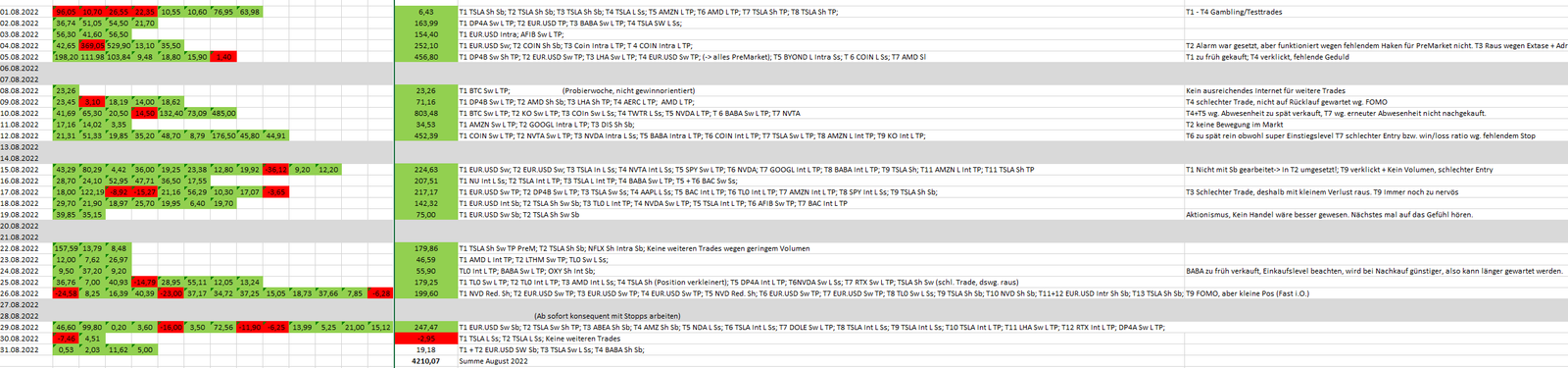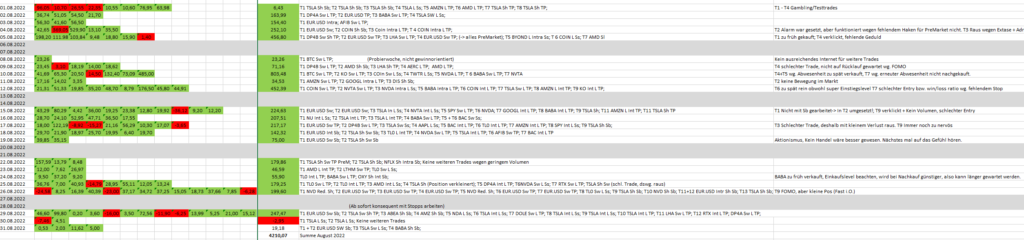 Man muss auch mal Glück haben und große Schnitzer sind mir im August 2022 nicht passiert. Mal sehen, ob das so bleiben wird. Die kleineren Fehler finden sich wie gewohnt im obigen Handelsprotokoll.