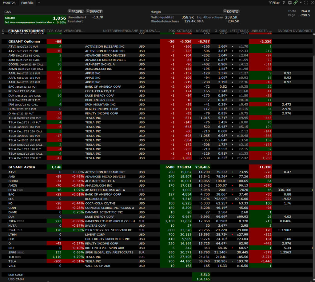 Mein Risiko im Bereich TESLA und dazu passenden Optionen war viel zu hoch und brachte mir ein paar unruhige Nächte ein. In Momenten negativer Impulse half mir jedoch meine bewusste Verlustrealisierung vom September. Mehrfach hat mich dieses Negativerlebnis vor Schnellschüssen bewahrt.