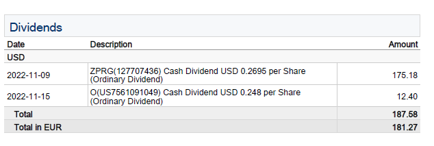 Ausschüttungen habe ich gar nicht mehr im Blick und der November ist bei mir in diesem Bereich auch mau: