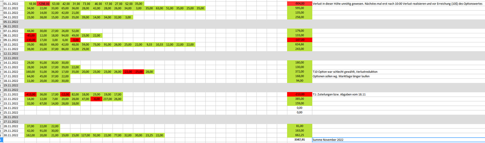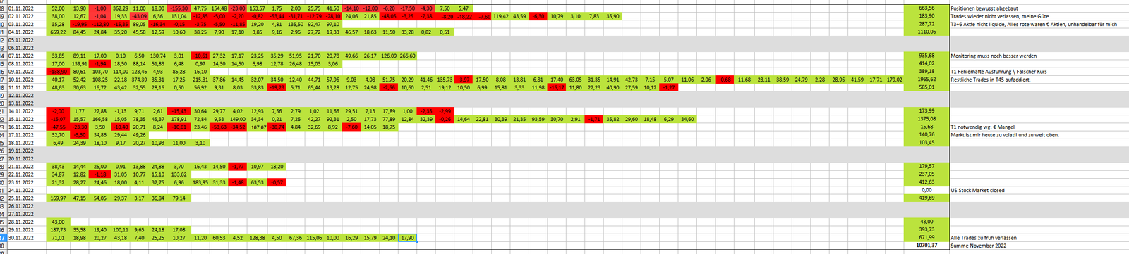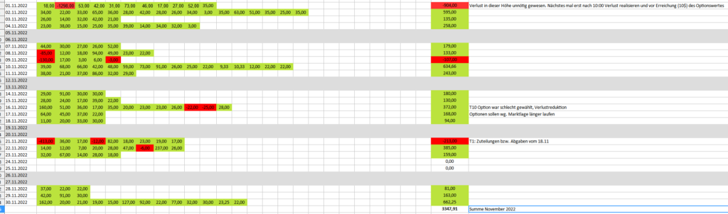 Ich denke, dass ich noch 2-3 Jahre brauche, um im Trading dort anzukommen, wo ich hinwill. Also bleibt die Profitabilität im Hintergrund und der Lernerfolg im Vordergrund. Damit endet der Money Report November 2022. Möge der Dezember ebenfalls ertragreich sein.