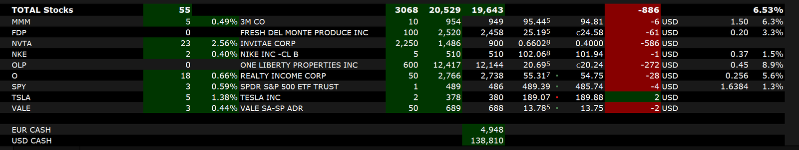 Meine Positionsgrößen zum Wiedereinstieg waren zum Monatesende nach Absacken zweier Werte (MMM & OLP) schlecht gewählt. Daher darf ich jetzt im Minus verweilen. Lekktion gelernt!