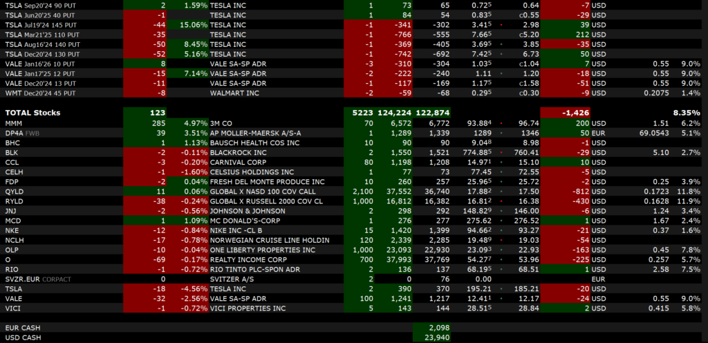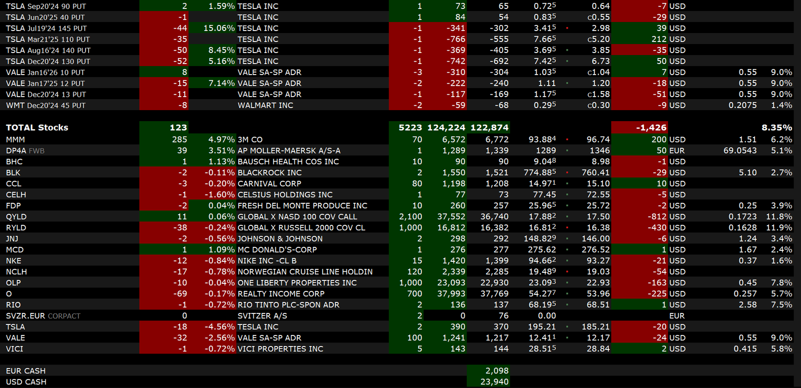 Meine Positionen für PRS sind derzeit O, CBP, KHC, BAC und TSLA. In Zukunft soll der Fokus auf Dividendenwerten liegen bleiben. Ich denke, ein Verhältnis von 80 zu 20 sollte passen. Das ich aktuell nicht mehr Positionen habe, liegt an der Auslastung meiner Margin.
