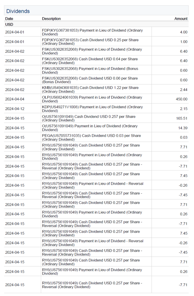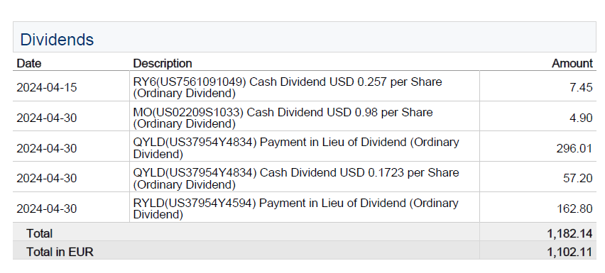 Summa summarum komme ich beim Money Report April 2024 bei den Dividenden auf folgende Werte: