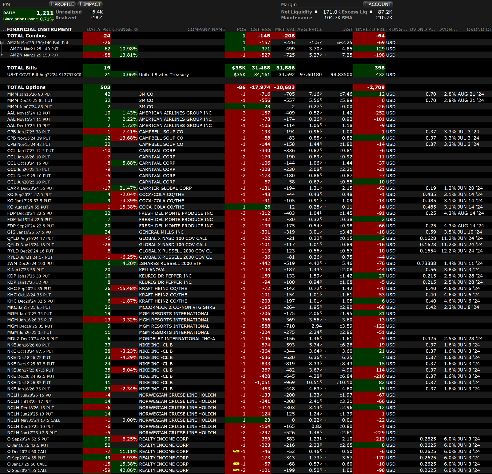 Funfact: KHC, KDP und CPB wollten nicht aufhören zu steigen, also eröffnete ich jeweils eine Position. Und siehe da, schon fallen die Kurse und wenn der Pivot Point kommt, verkaufe ich PUT’s. Inverse-Trading zum Erfolg gedreht.