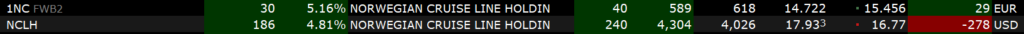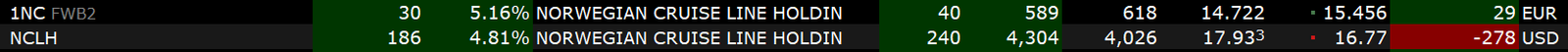 Am 01. Mai war nach meiner Auffassung überall Feiertag. Irgendwann gegen Nachmittag dämmerte es mir, dass die US-Börse doch geöffnet hatte. Dort begrüßte mich die NCLH Position mit einem Minus von mehr als 16%. Autsch. Zu spät, um hier noch artgerecht zu reagieren und damit ein klarer Regelverstoß. Nobody is perfect.
