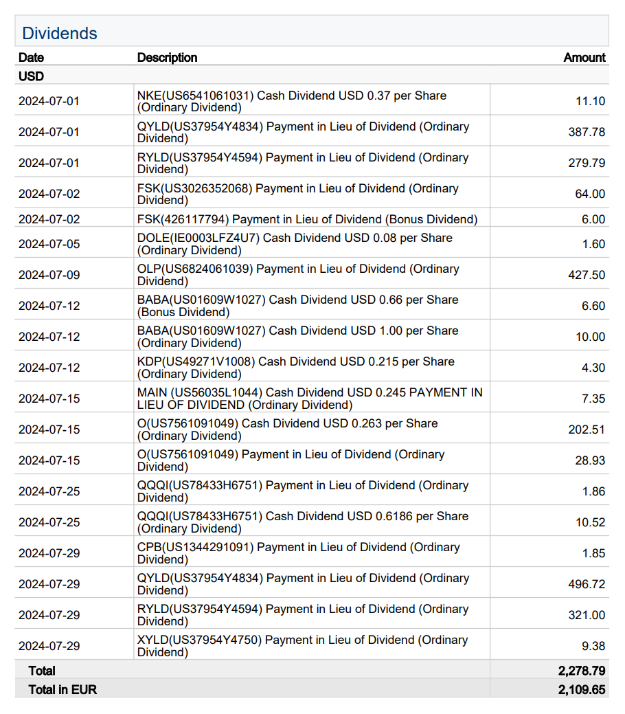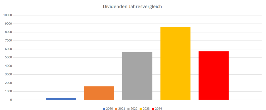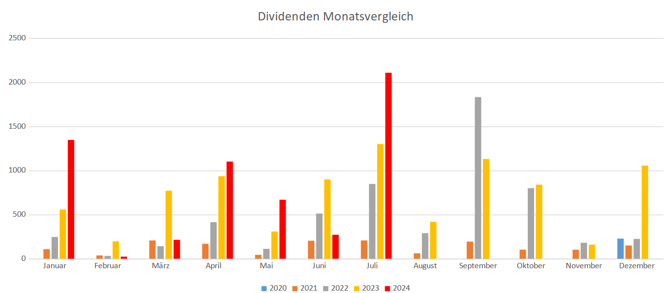 Im Juli 2024 waren die Ausschüttungen höher als im Vorjahr, obwohl jetzt ca. 90.000€ weniger im Depot liegen: