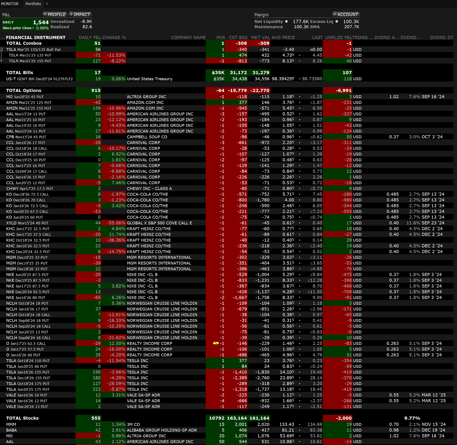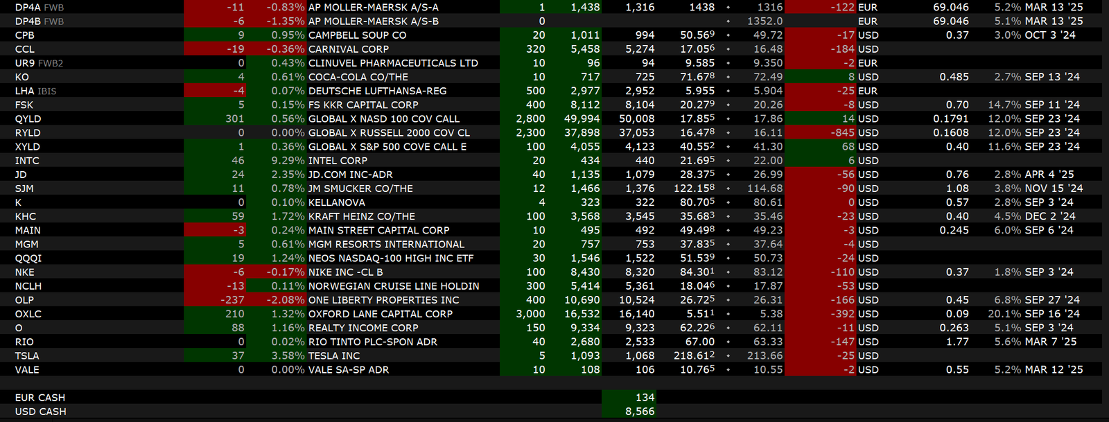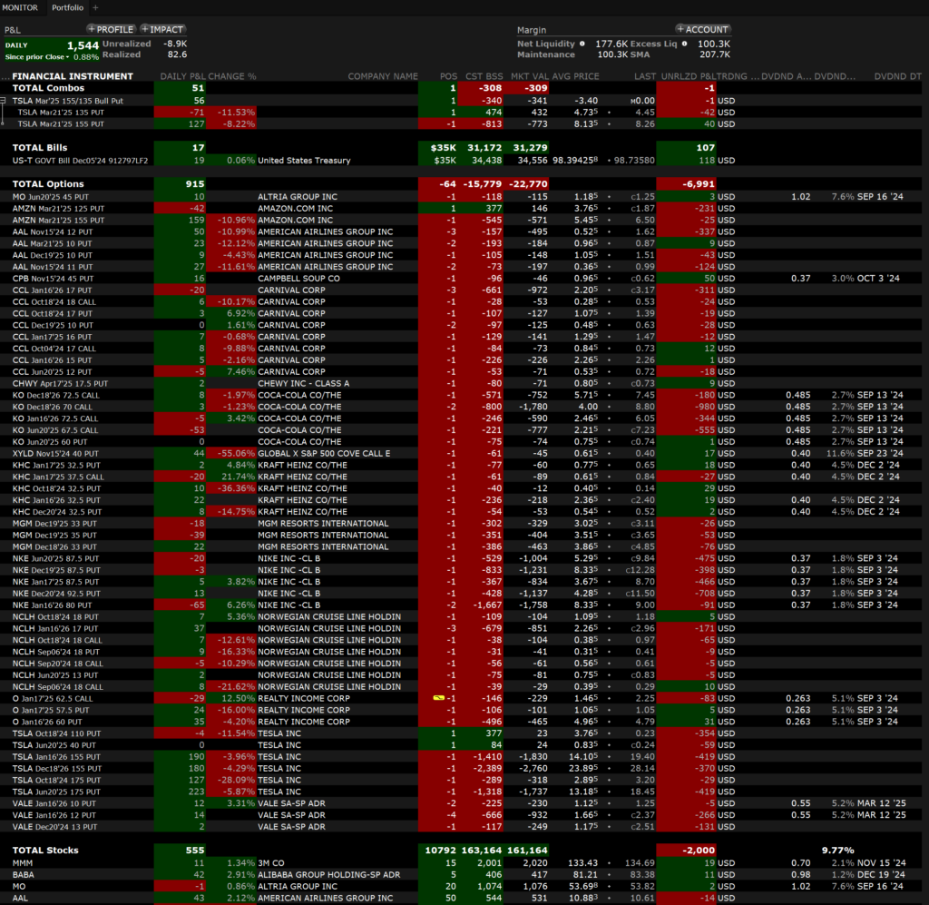 Mit Blick auf die US Wahl und der Schuldensituation der USA möchte ich mein Risiko im Bereich der Optionen verringern. Deshalb werde ich kaum noch neue Positionen erstellen und vorhandene bevorzugt schließen. Bei der Auswahl neuer Positionen werden Bull-Put-Spreads bevorzugt werden. Nach der Wahl werde ich urlaubsbedingt vermutlich ebenfalls noch kein Vollgas geben, das muss bis zum zweiten Quartal 2025 warten.